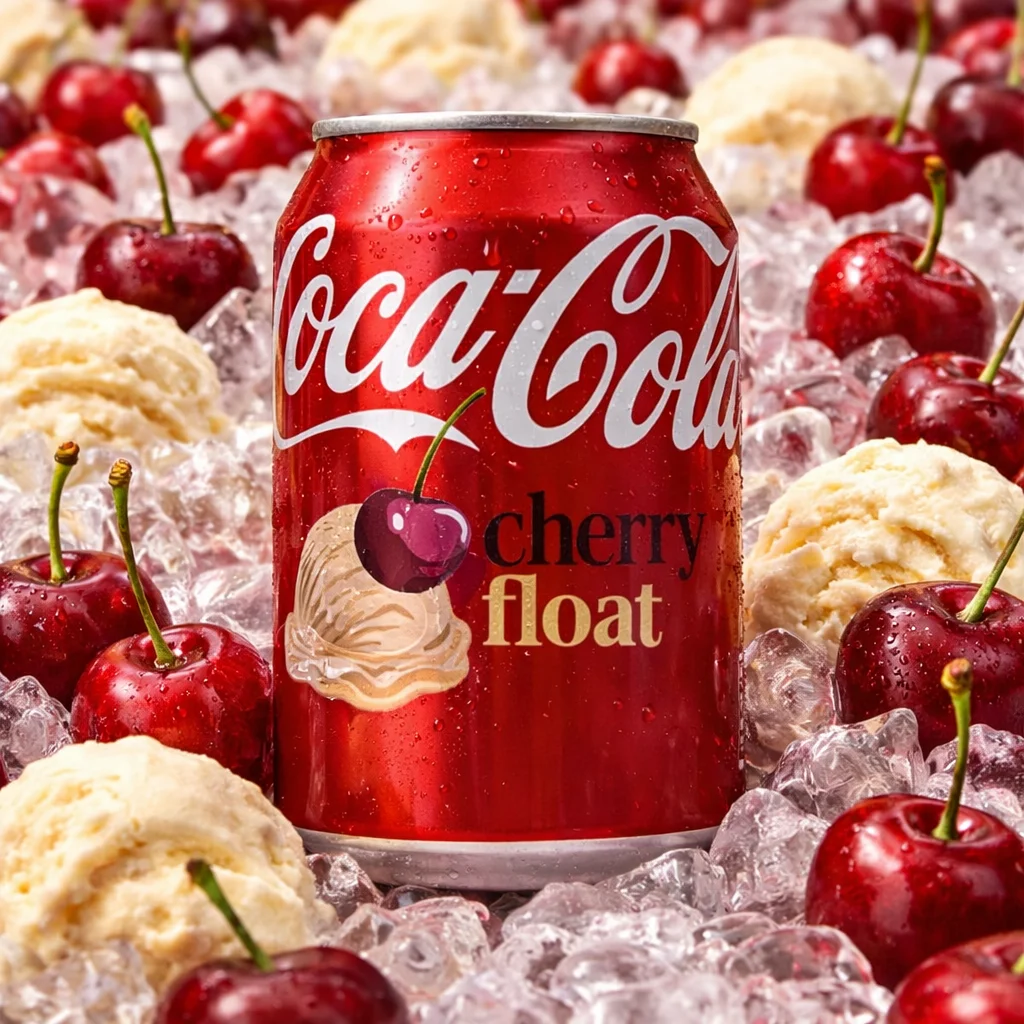 Coca-Cola Cherry Float to wyjątkowa odsłona kultowego napoju, która łączy intensywny smak coli z soczystą wiśnią 🍒 i delikatną, waniliowo-śmietankową nutą 🍦
